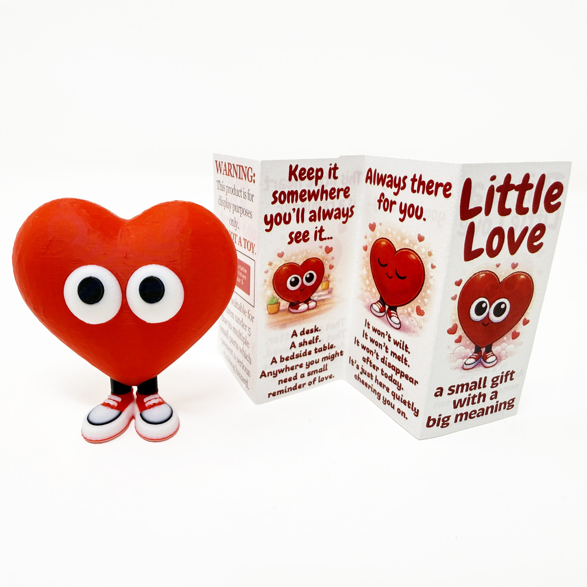 Give a Little Love! Pocket Hug is a sweet keepsake designed to symbolise giving your heart to someone you care about. Small in size but big on meaning, it’s a thoughtful token gift that says “this comes from the heart” without needing a long message. With its cute eyes and heart design, Pocket Hug looks great displayed on a shelf, desk or bedside table, making it a lasting reminder of affection. Made from PLA plastic and designed purely for display, it’s ideal as a romantic gesture for a girlfriend, boyfriend or someone special. Decorative item ONLY. Recommended for ages 14+.